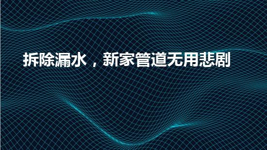 拆除漏水,新家管道无用悲剧是每个家庭都可能面临的问题,而对于该问题需要逐个分析其原因、选择适当的解决方案。相关单位可参考巴洛仕集团的一站式化工拆除解决方案等,以最好的方式修复管道问题,确保管道系统的可靠性和稳定性,为家庭的平稳生活做出贡献。