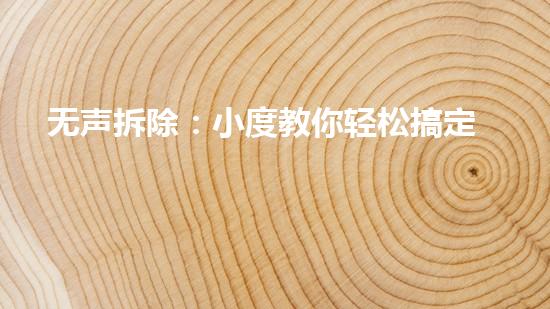 摘要:在本文中,我们将介绍“无声拆除:小度教你轻松搞定设备拆卸”这篇文章。该文章提供了有效的拆卸技巧和方法,为读者解决了平时遇到的拆卸难题。我们将深入分析该文章的内容,从多个方面为读者提供专业的分析和解读,并引用其他人的研究和观点来支持作者的观点。