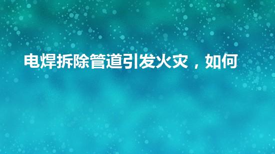电焊拆除管道引发火灾是一种非常危险的现象,容易造成财产损失和人员伤亡。因此,如何预防电焊拆除管道引发火灾成为一个非常重要的问题。本文将从多个方面深入分析电焊拆除管道引发火灾的原因,并提出相应的预防措施,希望能够为大家提供帮助。