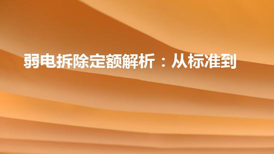 弱电拆除定额标准是对弱电拆除工程进行管理的依据,也是工程建设中必须要遵守的规定。目前,国家制订了一系列的弱电拆除定额标准,如《建筑工程弱电工程定额》、《铁路弱电工程定额》等,这些标准都对弱电拆除的范围和计算方法等提出了规定。在实际工程中,应根据不同标准进行定额计算,确保弱电拆除工程的合理实施。