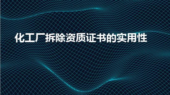 化工厂是一个充满危险的地方,仪器设备复杂,绝大多数原材料、半成品和成品都具有极高的危险性。因此,对于化工厂的拆除过程,安全应该是最重要的考虑因素。拆除资质证书的实用性主要在于其能够保障拆除安全。首先,证书能够对拆除单位进行审核,审核有效的拆除单位能够通过严格的安全考核,保障拆除安全。其次,证书对于拆除人员要求也比较严苛,拆除人员必须经过专业的培训,同时都需要经过实践证明。这样一来,证书就能够过滤掉部分专业能力不足的单位和人员,保障拆除过程的安全性。
