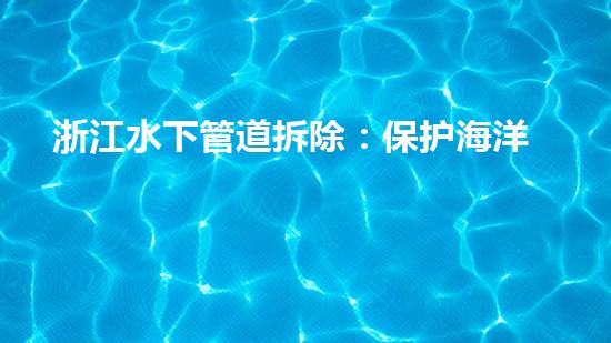 近年来,随着经济的快速发展,浙江省海岸线的建设也在逐渐扩展。然而,长期以来,海洋环境一直备受破坏和污染。为了保护海洋生态,浙江省开始着手拆除浙江水下管道。本文将从以下四个方面分析浙江水下管道拆除的重要性:节约资源、减少污染、保护生态环境和促进可持续发展。
