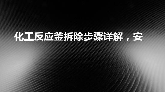 摘要:化工反应釜是生产过程中必不可少的设备,但一旦需要更换或拆除,其复杂的结构和危险性给拆除工作带来了挑战。本文将介绍化工反应釜拆除步骤详解,确保拆除过程的安全和高效。正文:1、拆卸前检查在拆除化工反...