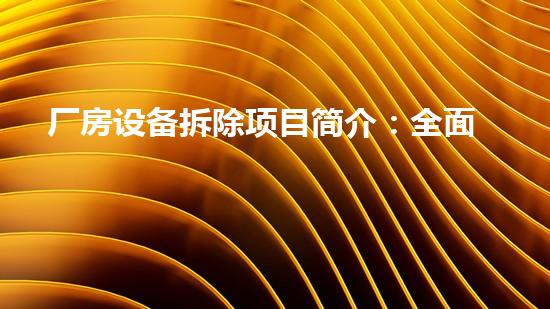 厂房设备拆除项目简介:全面了解拆除流程、技术难点及经验分享