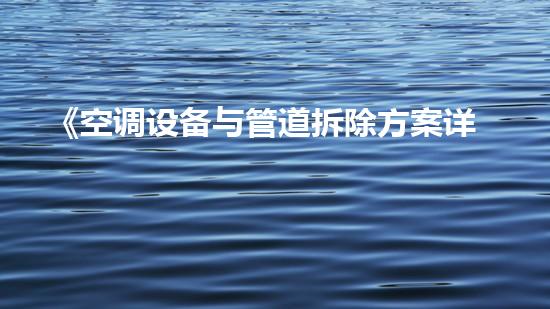 摘要:本文主要介绍了《空调设备与管道拆除方案详解》,该文章主要是介绍了一种新型的拆除方案,即水刀不动火拆除技术,该技术实现了不动火、不产生粉尘、不影响周边环境的拆除方式。通过本文的介绍,读者可以更加深...