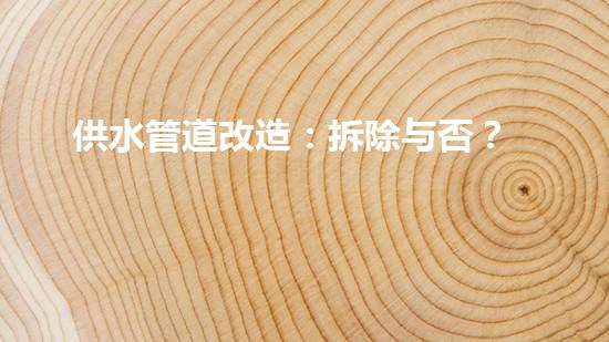 摘要:本文主要讨论的是供水管道改造的拆除与否的问题,包括为什么需要进行供水管道改造、拆除供水管道的优缺点、如何决定是否要拆除等方面。通过深入的分析和专业的观点和证据,本文旨在为读者提供更多的信息和思路...