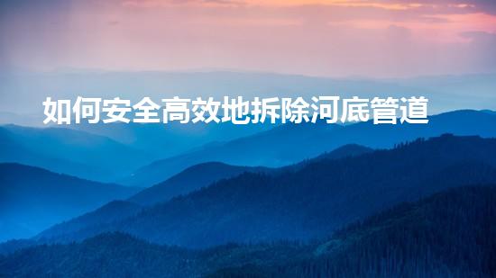 摘要:如何安全高效地拆除河底管道及清洗是一个重要的问题。在本文中,我们将从不同的角度出发,对这个问题做出深入的分析。我们会介绍一些新的技术和方法,来帮助您在河底管道的拆除和清洗过程中更加安全和高效。正...