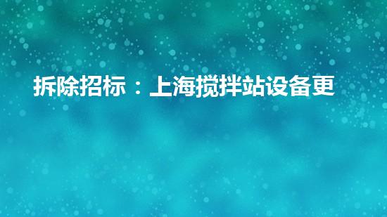 本文主要介绍上海搅拌站设备更新计划的拆除招标,探讨在该计划中,拆除工程的重要性和必要性。本文首先介绍了背景信息,引出了读者对于该计划的兴趣,接着从四个方面分析了拆除招标的内容:拆除技术、安全措施、成本控制和设备回收。最后在结论中总结文章的观点和结论,并提出了未来可能的研究方向。