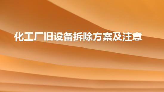 在化工生产过程中,经常需要进行设备的更换或拆除。化工厂旧设备的拆除方案和注意事项是化工企业必须掌握的重要技术,需要严格遵守相关规定和标准,以确保设备拆除过程安全有效。本文从多个方面深入分析化工厂旧设备拆除的方案和注意事项,以帮助读者更好地理解和掌握相关知识。