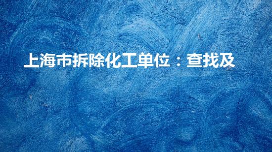 上海市是我国经济中心之一,也是我国化工行业的重要基地。然而,随着城市化的快速发展,上海市发现了一些存在安全隐患的化工厂,为了保障市民的生命和财产安全,相关部门决定拆除这些化工厂。本文将就上海市拆除化工单位:查找及进展展开分析,介绍其中的关键信息,以及拆除工作的背景、目的和进展情况。