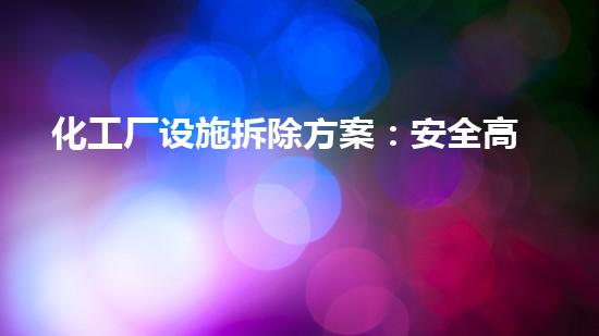 化工厂设施拆除方案需要考虑的问题非常多,从规划、设计,到拆除工艺和后期处理等方面都需要做好详细的准备。在拆除过程中,必须重视安全和环保问题,采取全程监控、培训、指导等有效手段,确保施工过程中的人员安全和环境保护。化工厂设施拆除领域中的新技术和新工艺也在不断涌现,如水刀不动火拆除技术等,这些新技术的应用有助于提高工作效率,减少环境污染,使拆除工程更加安全、高效和可持续发展。