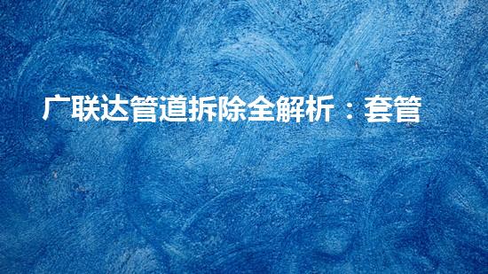 广联达管道拆除是建筑拆除过程中不可避免的一环,套管道是其中一种常见的拆除方法。本文将从套管道的方法和注意事项两个主题来探讨广联达管道拆除的全过程,让读者对这一过程有更深入的了解。