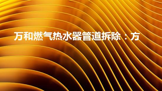 摘要:本文将系统介绍万和燃气热水器管道拆除的方法和注意事项。通过引出读者的兴趣和提供背景信息,希望读者能够对这一话题产生浓厚的兴趣。正文:一、拆除前的准备工作在进行燃气热水器管道的拆除工作之前,需要进...
