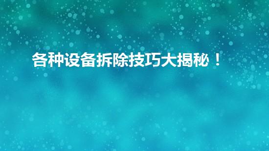 各种设备拆除技巧大揭秘!