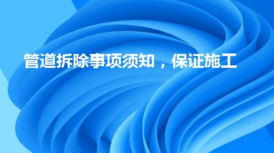 在管道拆除过程中,保证施工安全是最重要的一点。为了确保施工的安全性,需要在拆除前对安全风险进行评估;需要制定详细的拆除方案,并考虑不同危险情况下的应急预案;同时,需要选择合适的拆除技术,并做好现场安全防护措施。通过以上的措施,可以避免意外事故的发生,确保拆除工程的顺利进行。