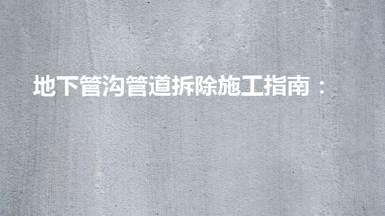 地下管沟管道拆除施工指南:工程预备、危险控制及技巧
