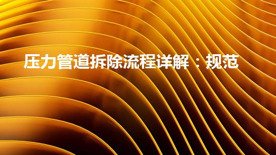 摘要本文将介绍压力管道拆除流程的规范、安全和高效性。压力管道是化工厂、炼油厂和其他生产场所的常见设备之一。然而,当这些管道失效或需要更换时,必须遵守严格的规则和程序,以确保拆除过程的安全和最大程度地减...