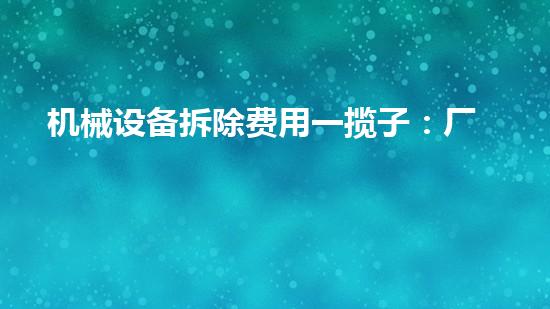 机械设备拆除费用一揽子:厂房设备拆卸价格大揭秘摘要:本文将介绍机械设备拆除费用一揽子:厂房设备拆卸价格大揭秘。本文将从多个角度深入分析机械设备拆除所需要的费用,包括劳动力费用、设备费用、材料费用等方面...