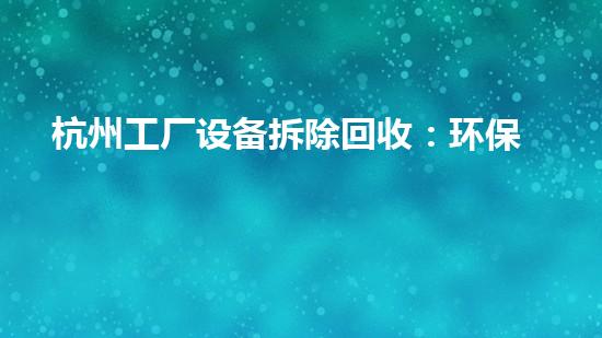 摘要:当前,环保、高效、安全已成为设备拆除回收的关键词。本文将以杭州工厂设备拆除回收为例,从四个方面分析其环保、高效、安全之间的关系:技术应用、危废处理、设备回收和土壤修复。巴洛仕集团的不动火拆除技术...
