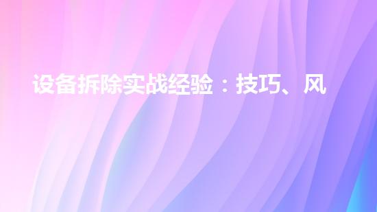 摘要:设备拆除在工业生产中无处不在,但是拆卸过程中也伴随着巨大的风险和安全隐患。因此,本文章从技巧、风险和注意事项三个方面,分享了设备拆除实战经验和专业的分析介绍。通过深入分析和解读双方实际操作情况,...