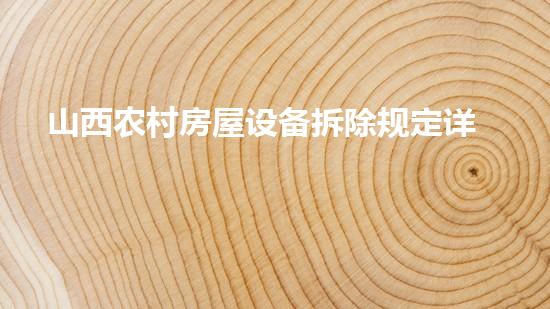 山西省已经出台《山西省农村房屋设备拆除管理办法》,规定了农村房屋设备拆除应当遵循有序拆除、安全可靠、环境卫生、资源回收等原则,明确了各级政府和相关部门的职责和义务,完善了农村房屋设备拆除管理体系。该规定的出台,不仅是为了保障农民的安全和权益,更是对农村建设和环境保护的重要推动力。