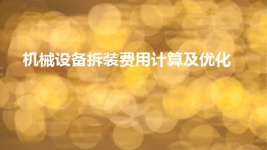 机械设备拆装费用计算及优化分析是现代工程管理中重要的一环。本文将介绍机械设备拆装费用的计算方法以及如何进行优化分析,以帮助读者更好地了解该领域的相关知识。