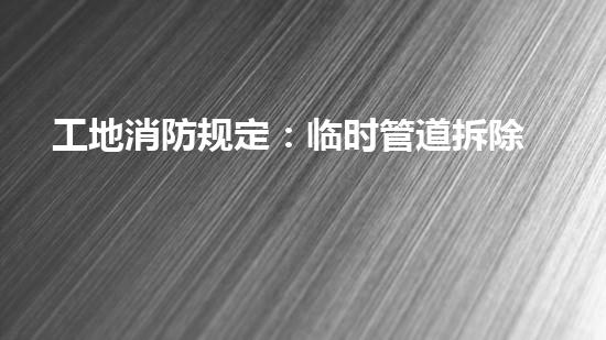 工地消防规定是保障工地人员安全与项目正常进行的关键。本文将从临时管道拆除说明入手,介绍工地消防规定相关知识,诱发读者兴趣,并提供背景信息。