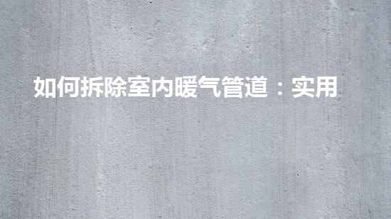 拆除室内暖气管道可能是一项棘手的任务,但如果你知道实用技巧和注意事项,就可以轻松地完成这项工作。本文将介绍如何拆除室内暖气管道的方法和技巧,以及需要注意的事项。无论你是想DIY还是找专业人员来完成任务,这些知识都将非常有用。