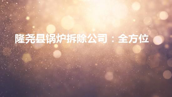隆尧县锅炉拆除公司是一家专业的拆除公司,其特色在于全方位服务和高效拆除。本文将对隆尧县锅炉拆除公司的服务特色和优势进行详细阐述,以供读者参考。