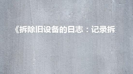 《拆除旧设备的日志:记录拆除历程,保障生态环境》