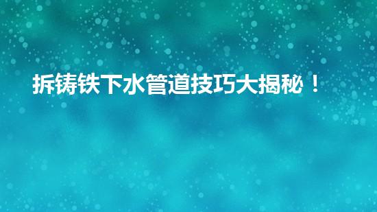 摘要:在房屋装修或者水电维修中,拆除旧厕所或者更换旧水管常常需要拆除铸铁下水管道。但是,拆除铸铁下水管道是一项相对繁琐的工作,需要一些技巧和注意事项。本文将从多个方面讲述关于拆除铸铁下水管道的技巧和注...