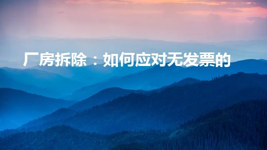 摘要:随着城市发展和工业升级,厂房拆除已经成为一个非常普遍的现象。然而,在厂房拆除的过程中,遇到无发票的情况也是很常见的。本文将针对这一问题,从专业的角度出发,介绍厂房拆除如何应对无发票的情况。正文:...