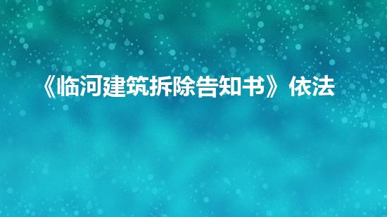 《临河建筑拆除告知书》依法出台,涵盖全程安全保障