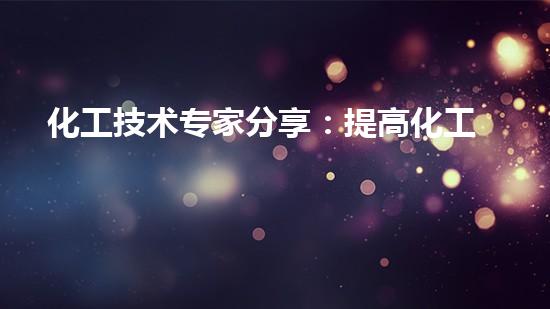 化工技术专家分享:提高化工产品安全生产的方法