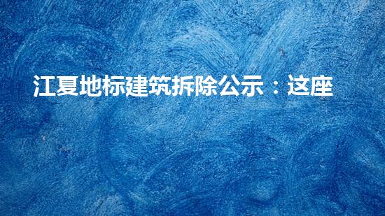 江夏地标建筑拆除公示:这座城市的记忆将要消逝