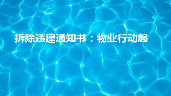 摘要:拆除违建通知书:物业行动起来。违建是城市建设中的顽疾,严重影响城市形象和市民生活。物业作为一方重要的参与者,有责任和义务在拆除违建中发挥作用。本文从拆除行业专家的角度,就拆除违建通知书:物业行动...