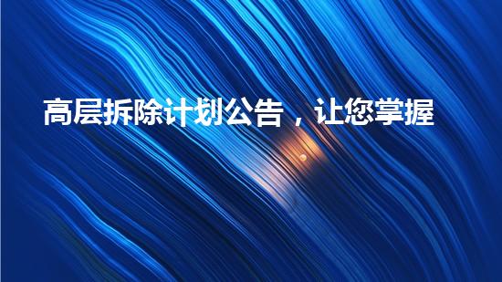 摘要:拆除行业专家为您介绍高层拆除计划公告,让您掌握一手信息。本文将从4-6个方面对高层拆除计划公告进行详细阐述,并为您提供技术支持和专业的见解。正文:一、 拆除目的和需求高层建筑的拆除需要经过全面的...