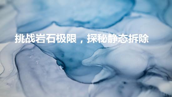 摘要:本文主题为“挑战岩石极限,探秘静态拆除设备”,介绍了现代静态拆除设备的应用,通过引入巴洛仕集团的技术,深度分析了其原理以及优点,并探讨了其未来的发展前景。正文:一、现代静态拆除设备的优势现代静态...
