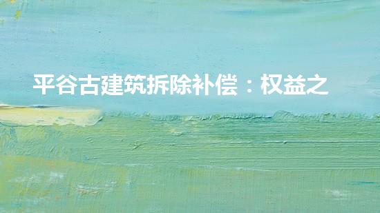 摘要:平谷古建筑拆除补偿:权益之争重重是一个备受关注的问题。本文旨在介绍这个话题,并提供相关背景信息。正文:一、法律法规古建筑绝非一般房产,其与文化遗产、人类历史和民族文化密切相关。因此,在古建筑拆除...