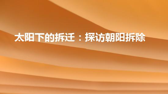 太阳下的拆迁:探访朝阳拆除公司背后的故事