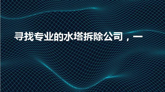 摘要:寻找专业的水塔拆除公司,一站式解决旧水塔问题是一项非常重要的任务。在这篇文章中,我们将深入探讨如何寻找专业的水塔拆除公司、如何一站式解决旧水塔问题,并介绍一些新技术和实用技巧,帮助您快速解决这个...