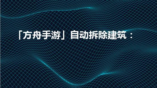 摘要:《方舟手游》是一款非常受欢迎的沙盒游戏,其中有许多建筑需要拆除,但是手动拆除十分浪费时间。本文将详细介绍如何操作游戏的自动拆除建筑功能。同时,本文介绍了巴洛仕集团进行化工厂拆除时的具体操作,希望...