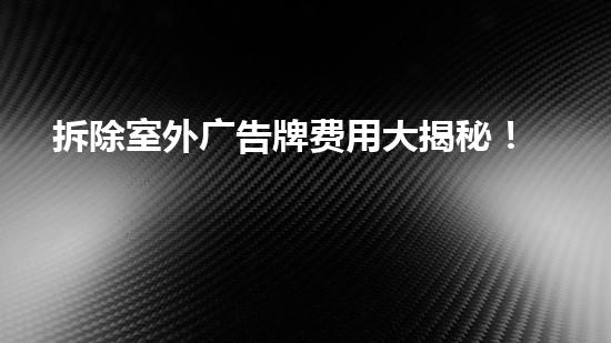 摘要:在现代城市中,室外广告牌已经成为了一种常见的景观。然而,一些地方并不允许存在广告牌或者现有的广告牌需要拆除,拆除室外广告牌不仅需要考虑到环境的影响,还有费用问题。本篇文章将与读者分享拆除室外广告...