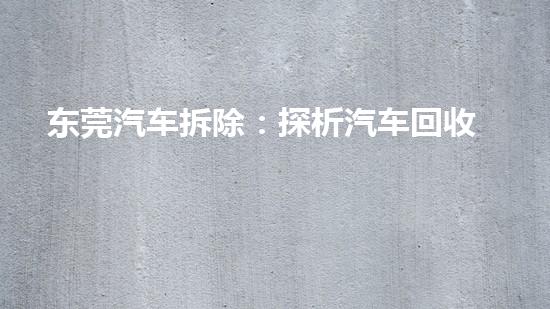 东莞汽车拆除:探析汽车回收利用的可持续发展之路