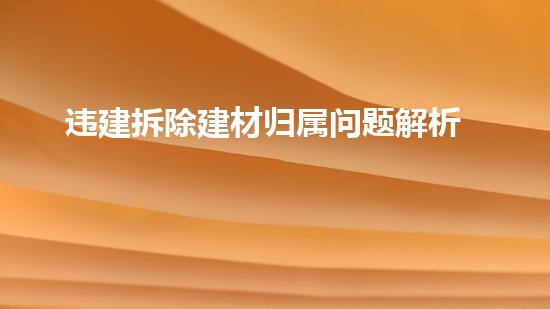 摘要:随着城市进一步发展,违建拆除也成为了一项重要的任务。然而,在违建拆除过程中,建材归属问题却成为了一大难题。本文由一位化工技术专家的角度出发,对违建拆除建材归属问题进行了详细深入的阐述。正文:一、...