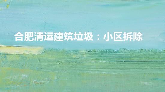 合肥清运建筑垃圾:小区拆除、环保治理!