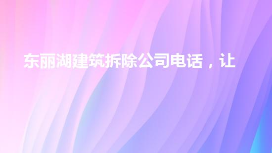 摘要:本文主要介绍东丽湖建筑拆除公司电话,让拆除变简单的相关情况。在讲述该公司电话的同时,还将介绍该公司在拆除行业当中的多项优势,包括其专业的技术实力,先进的设备和环保理念等。正文:一、电话咨询更方便...