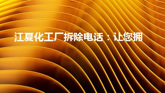 江夏化工厂拆除电话:让您拥有便捷拆除服务