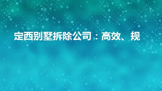 定西别墅拆除公司:高效、规范、可靠的拆迁服务