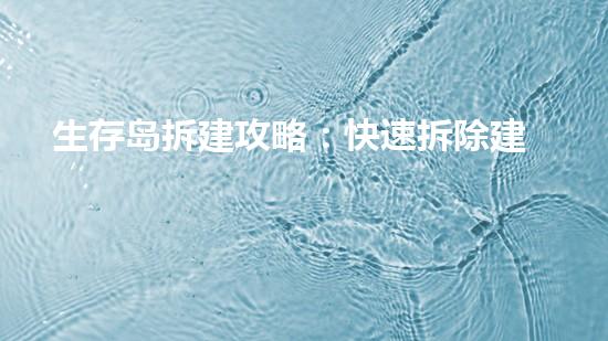 摘要:本文主要介绍一个建筑拆除行业专家的技巧和经验,旨在为读者提供生存岛拆建攻略中的快速拆除建筑方法。我们将从4个方面进行详细阐述,包括人力和设备的配置、拆除顺序和流程、材料回收与环保施工、以及巴洛仕...